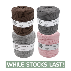 Please note: Depending on the exact fabric scraps the yarn is made from, the exact colour, feel + thickness of the yarn can vary. Keep this in mind for larger projects.